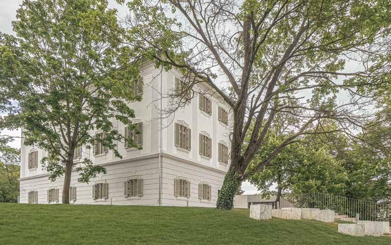 A balatoni nyaralásélmény történeti hátterét összefoglaló kiállítás gondolatát kell első helyen kiemelni, mint aminek köszönhetően az épület újjászülethetett. A Nyaralástörténeti Látogatóközpont hangzatos nevet kapó felújított épületet bejárva az első élmény éppen annak szól, hogy maga a ház és a benne installált kiállítás milyen szerves módon forrt egybe. Az épület legősibb magját rejtő földszint, annak is a csehsüveg-boltozatos terei a restaurált, könnyed virágfüzéres díszítőestéssel, magát az épületet hivatott bemutatni. Az egykori szállodai szobákban, tematikus rendben, a nyaralással kapcsolatos önálló fejezetek sorolódnak, helyenként remek belsőépítészeti megoldásokkal kísérve. A környezet rendezése hasonló minőséggel társul az építészeti világhoz.