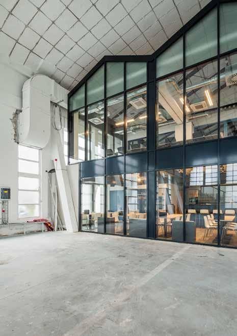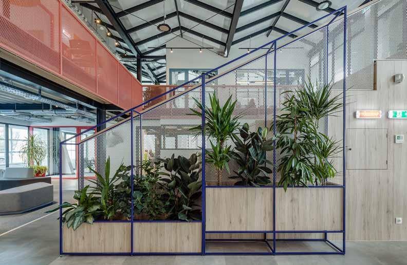 Redesigned by Minusplus, this building was a readily found object that the creators took on with great excitement. They worked on it until they achieved a result that everyone concerned liked: a well-functioning, cool contemporary interior with an industrial aesthetic that showcased and even enhanced the original structure, and which, last but not least, did not burden the client’s budget. The former industrial hall, named Inside-In, was reborn as the headquarters of an infrastructure construction company. The name speaks for itself: the designers went even further inside, creating the new office space based on the „house within a house” principle. This was not only for the sake of a pun, but for highly rational reasons. When utilizing industrial halls, the creation of boundary structures that meet modern energy standards involves a significant financial investment and countless hours of work targeting to create the appropriate junctions. However, if instead of a complicated cladding system, we cut through the Gordian knot with a bold move and start building within the existing structure, everything turns out to be a lot simpler and cheaper. The concept is a clear one: transparent spaces, lightweight industrial furniture, cheerful palettes, and the original structure is exposed as much as possible, creating a composition that reveals a harmonious unity of the old and the new.